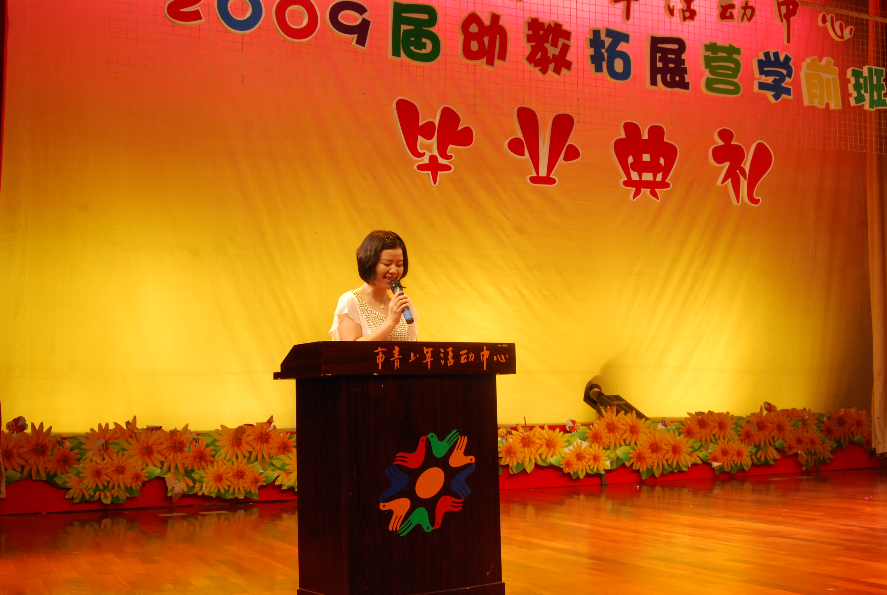 6月25日下午,活動中心2009屆幼教拓展營畢業(yè)典禮在觀演廳隆重舉行!活動中心的領(lǐng)導(dǎo)、老師、各位學(xué)員及家長共聚一堂,祝賀孩子們圓滿完成一年的幼教拓展營學(xué)習(xí)!