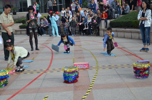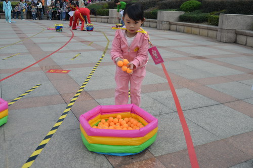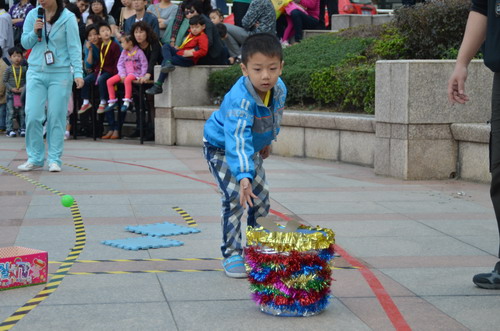 10月30日上午,“寶貝向前沖”2011年溫州十佳寶寶才藝大賽的第二項比賽活動“寶貝闖關賽”在中心下沉式廣場進行。本次比賽分大班、中班、小班三個組別,選手們需過投球關、比比誰捧的多、智慧樹、算數小專家、七巧板創意五關,以獲得笑臉卡數量多少和闖關后速度的快慢來評選各級段十佳小選手。參加本次活動的對象均由中心各項目推選出的優秀學員組成。