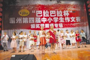 6月20日,“巴拉巴拉杯”溫州第四屆中小學(xué)生作文大賽頒獎(jiǎng)暨朗誦專場(chǎng),在一等獎(jiǎng)得主的深情誦讀中拉開帷幕,而一篇篇精彩作品,在通過(guò)作者的朗誦得以傳播的同時(shí),也使得這場(chǎng)歷時(shí)三個(gè)多月之久的全市性中小學(xué)生作文賽完美地落下帷幕。 溫州青少年活動(dòng)中心觀演廳座無(wú)虛席,現(xiàn)場(chǎng)嘉賓分別是前來(lái)領(lǐng)獎(jiǎng)的全市各校中小學(xué)生、優(yōu)秀指導(dǎo)老師和榮獲組織獎(jiǎng)的學(xué)校代表,當(dāng)然還有陪伴孩子前來(lái)的家長(zhǎng)朋友們。于是,我們所看到的是一雙雙期待的眼睛、一道道贊許的目光、一次次相互鼓勵(lì)的掌聲。在現(xiàn)場(chǎng),我們看到了不少新面孔,也看到了很多熟悉的笑臉,他們中,有去年已獲一等獎(jiǎng),今年依然參賽,再次獲得一等獎(jiǎng)的;有每年參賽,成績(jī)自感不理想?yún)s要一屆一屆堅(jiān)持參賽,自信總有一次會(huì)成功的。這大概就是一場(chǎng)公益性比賽的魅力吧。 這場(chǎng)簡(jiǎn)潔而不失隆重的專場(chǎng),其背后是組委會(huì)工作人員辛勞的身影和參賽者與他們學(xué)校老師認(rèn)真而堅(jiān)持的汗水。是的,在每一年這項(xiàng)作文賽事的整個(gè)過(guò)程中,都值得我們驕傲。還是那句話:一切意義盡在過(guò)程之中! 讓青少年的文化活動(dòng)不那么功利,把新一代少年朋友牽引到文學(xué)中來(lái),再把寫作轉(zhuǎn)化為一種提升自我的素質(zhì)修養(yǎng)。我們將一直為此努力!
