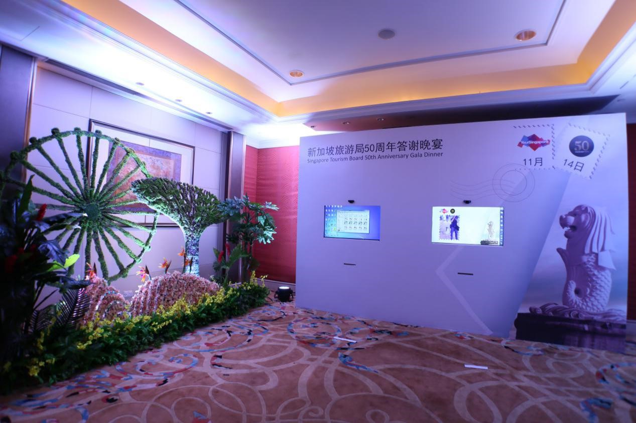 禮儀帶領嘉賓電子拍照簽到,照片做為見證新加坡旅游局50周年的紀念