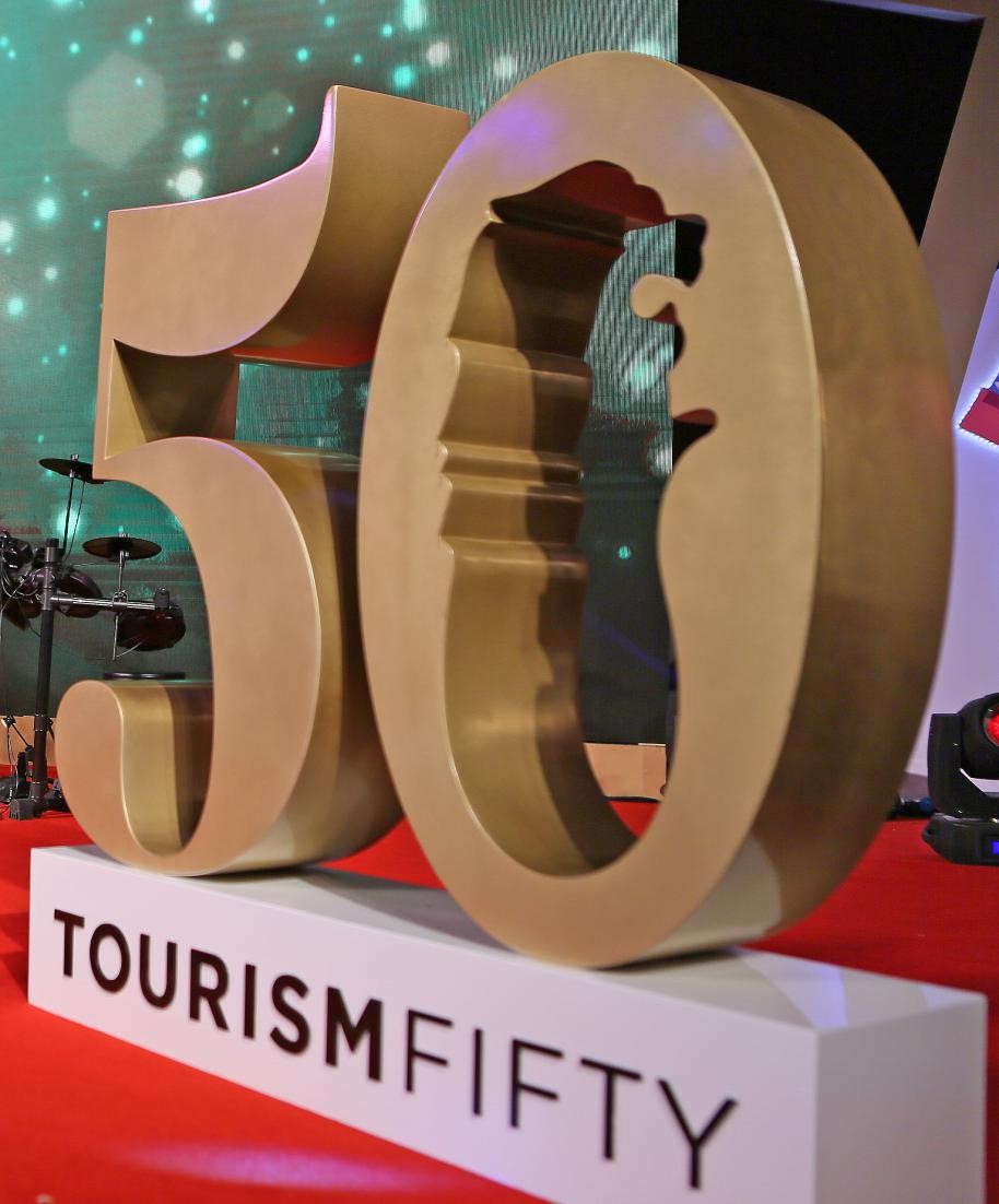 晚宴結束后大家合影留念,紀念珍貴的時刻。在承載著50周年的這個立體字前,大家共同見證新加坡旅游業對未來的規劃。