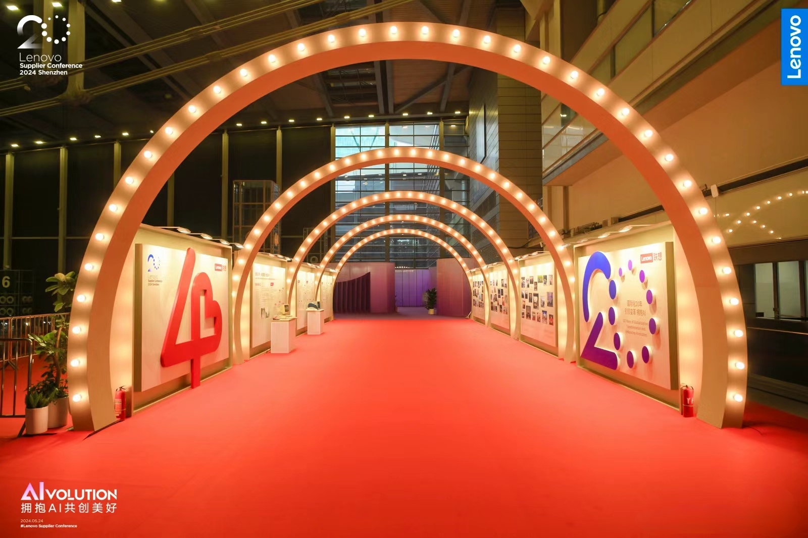 在走廊兩側設置歷程墻,通過圖片、文字等形式展示聯想集團20年的供應商大會歷程和40年的發展歷程,讓參觀者能夠深入了解聯想集團的歷史和文化。