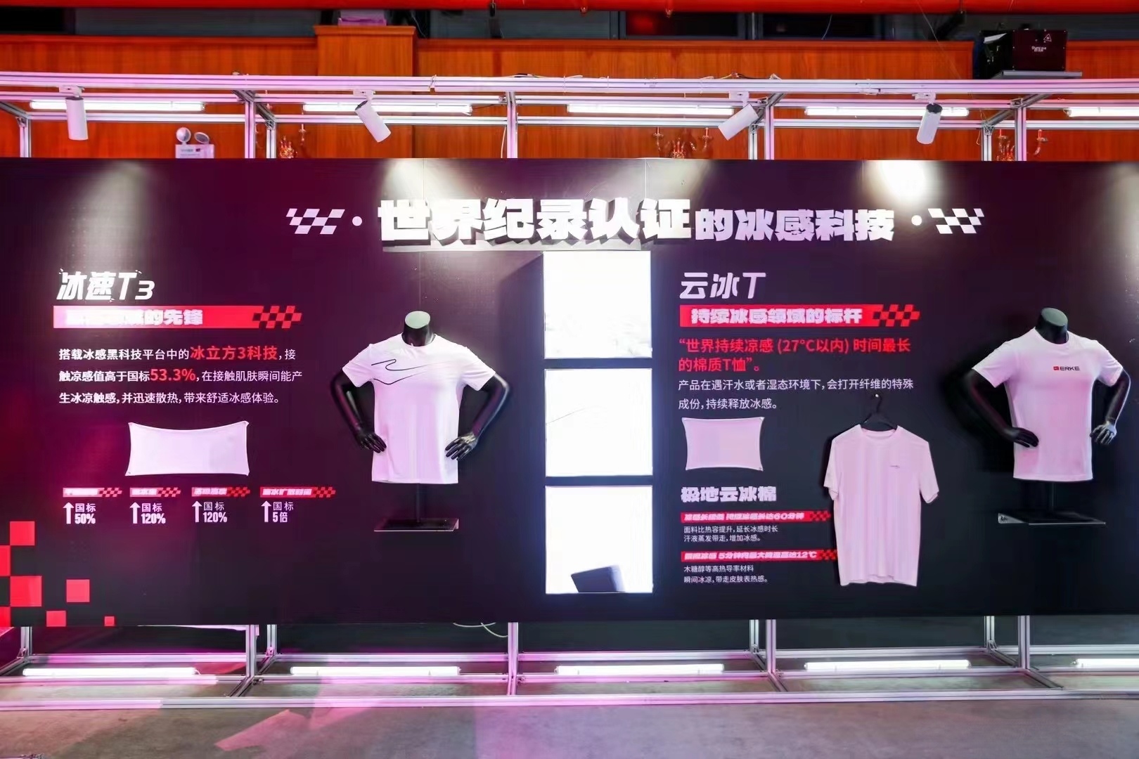 現(xiàn)場(chǎng)通過(guò)布置與運(yùn)動(dòng)相關(guān)的場(chǎng)景和道具,如跑道、起跑線、運(yùn)動(dòng)裝備展示等,營(yíng)造了濃厚的運(yùn)動(dòng)氛圍和場(chǎng)景感。