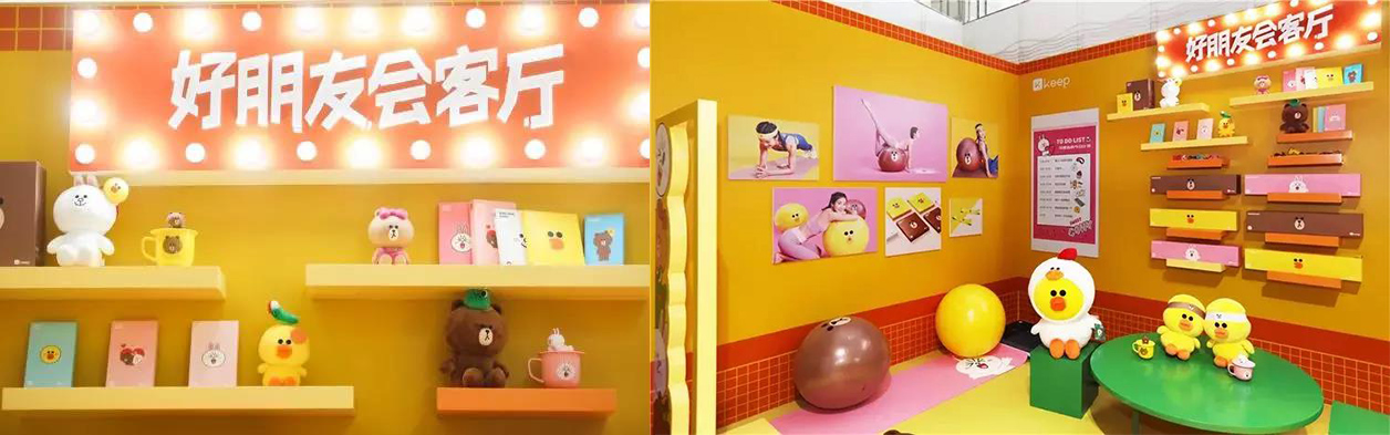 除了互動(dòng)體驗(yàn),Keep還與linefriends合作,推出超萌的周邊產(chǎn)品,開設(shè)“好朋友”專柜。玩家可以在這里選購(gòu),布朗熊大瑜伽球、可妮兔瑜伽磚等相關(guān)產(chǎn)品,同時(shí)還可以在這里和linefriends合影。
