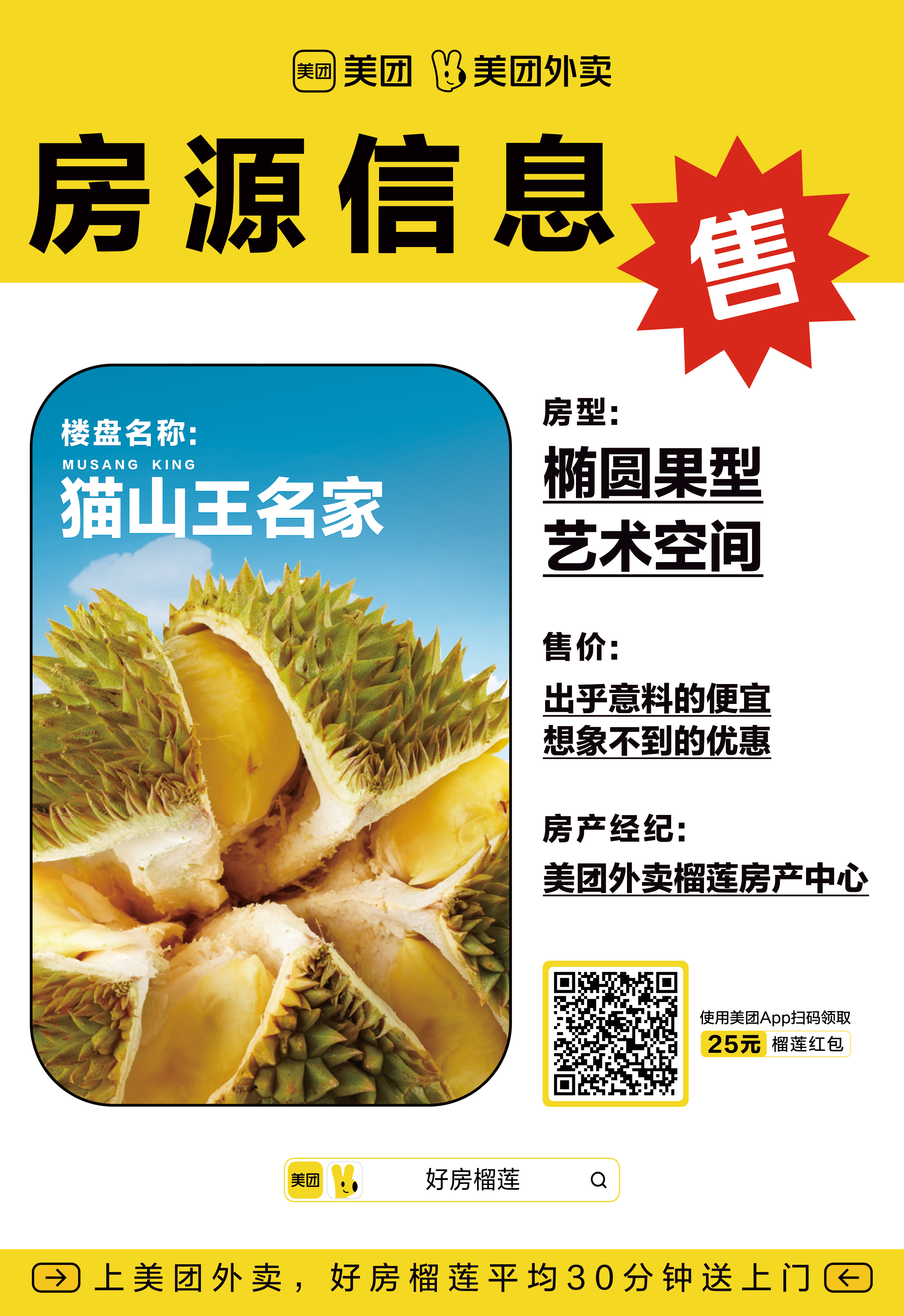 美團外賣賣房了,榴蓮房產中心限時開業(yè)