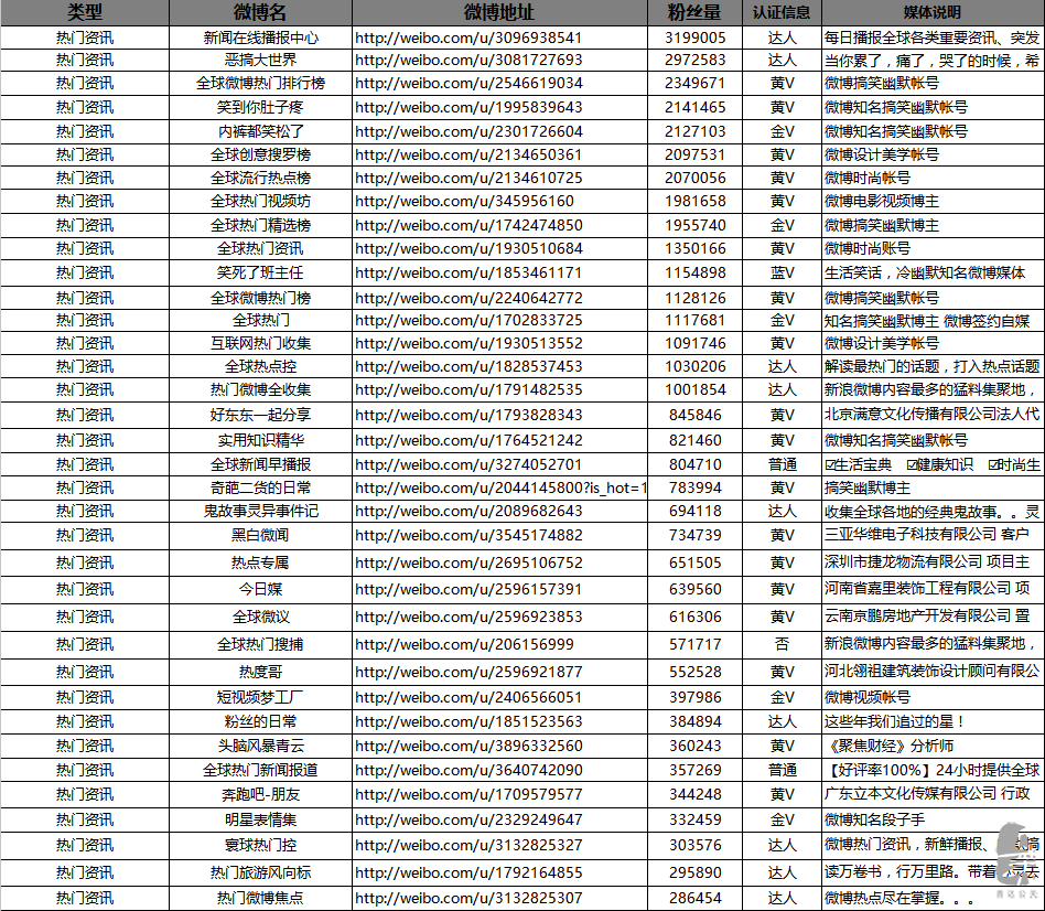 我們還擁有大量的微博紅人資源,方便把信息一夜之間傳遍五湖!