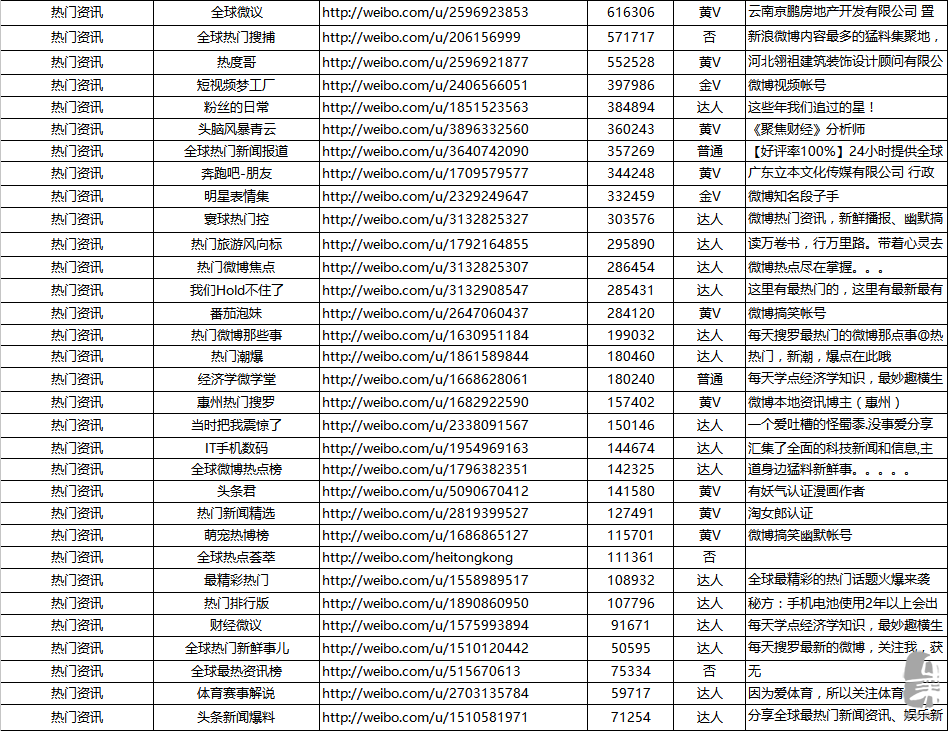 善達公關微博KOL資源
