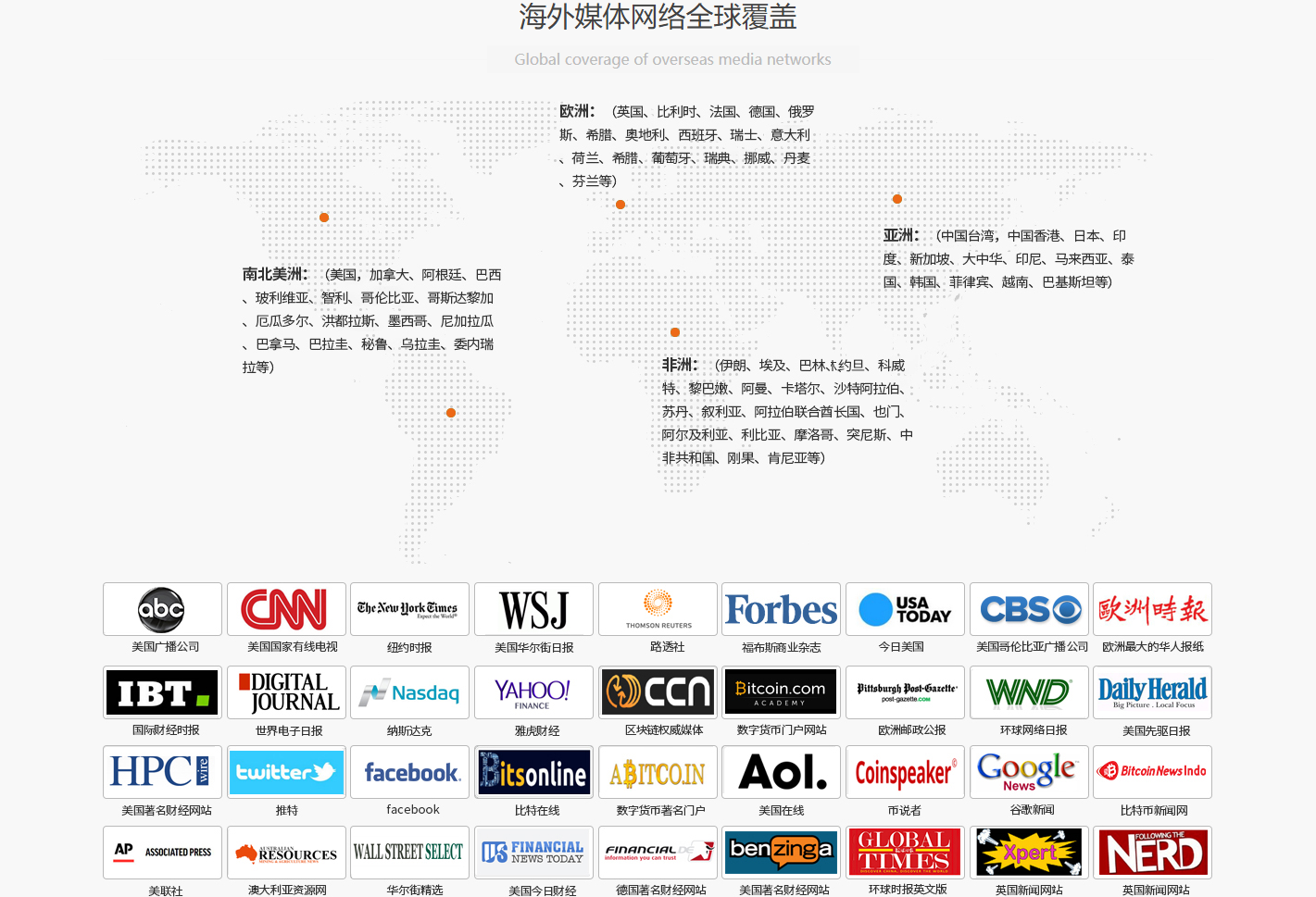 擁有眾多合作的海外媒體覆蓋海外主要媒體
