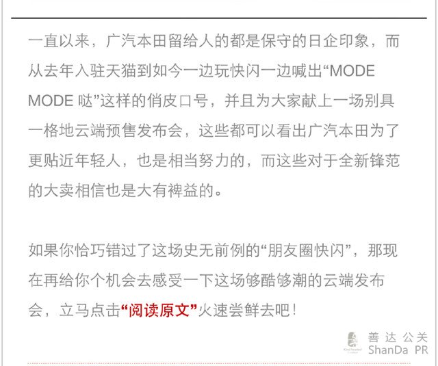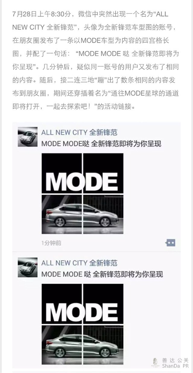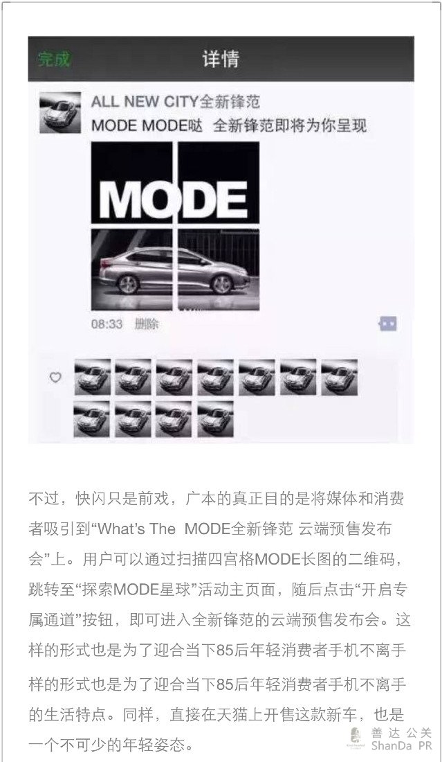 在大街上玩快閃,作為營銷手段來說,這一招在消費者眼中早就不新鮮了,要顯得更特別,最簡單直接的方法或許是將它搬到另一個舞臺上,比如說微信朋友圈。這里說的是廣汽本田不久前為全新鋒范預售發布而制造的一波快(shua)閃(ping)活動。